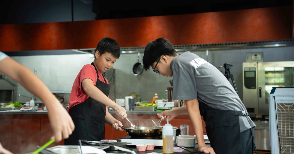 Không gian học nấu ăn chuẩn studio với bếp mở, thiết bị cao cấp và đội ngũ giàu kinh nghiệm – phù hợp cho: