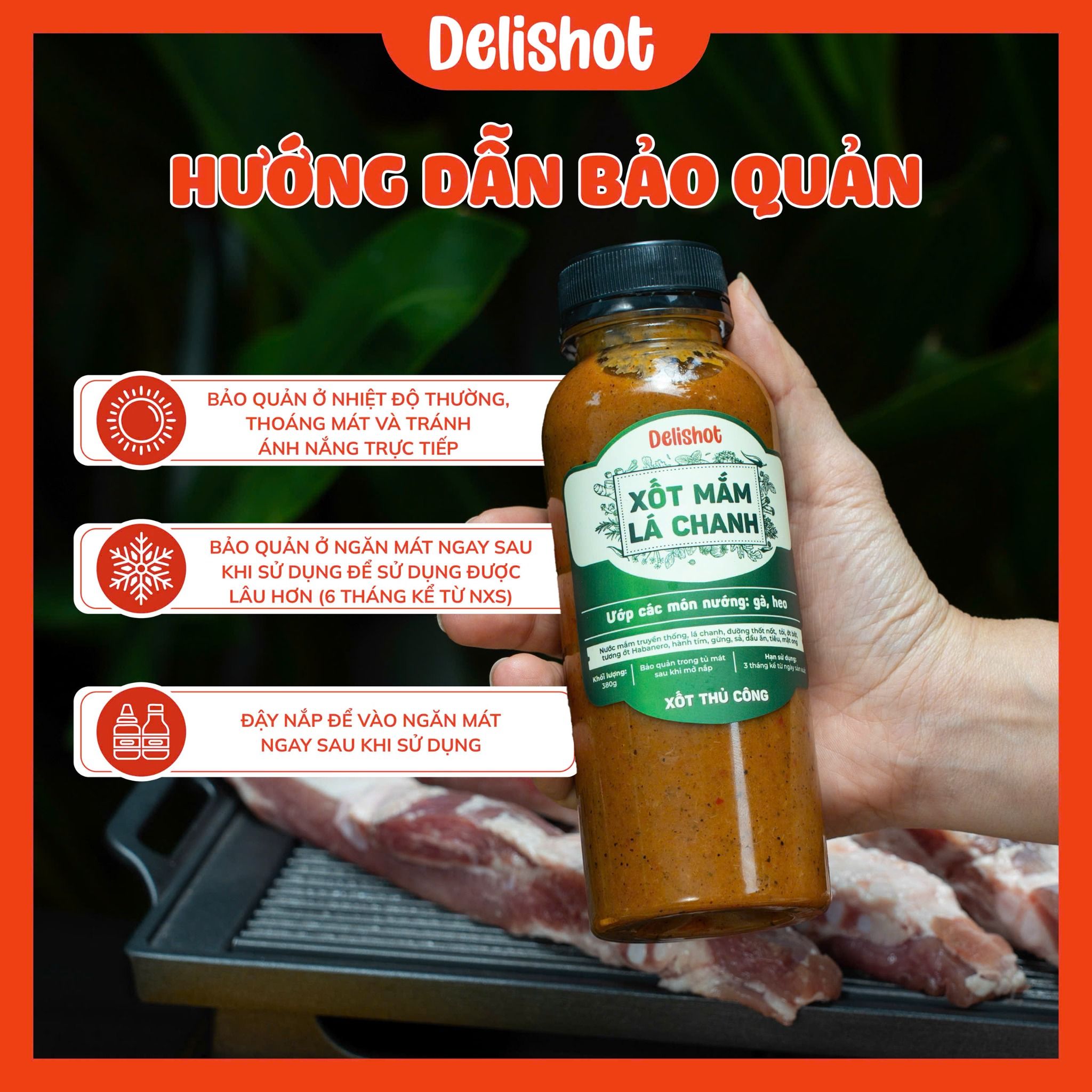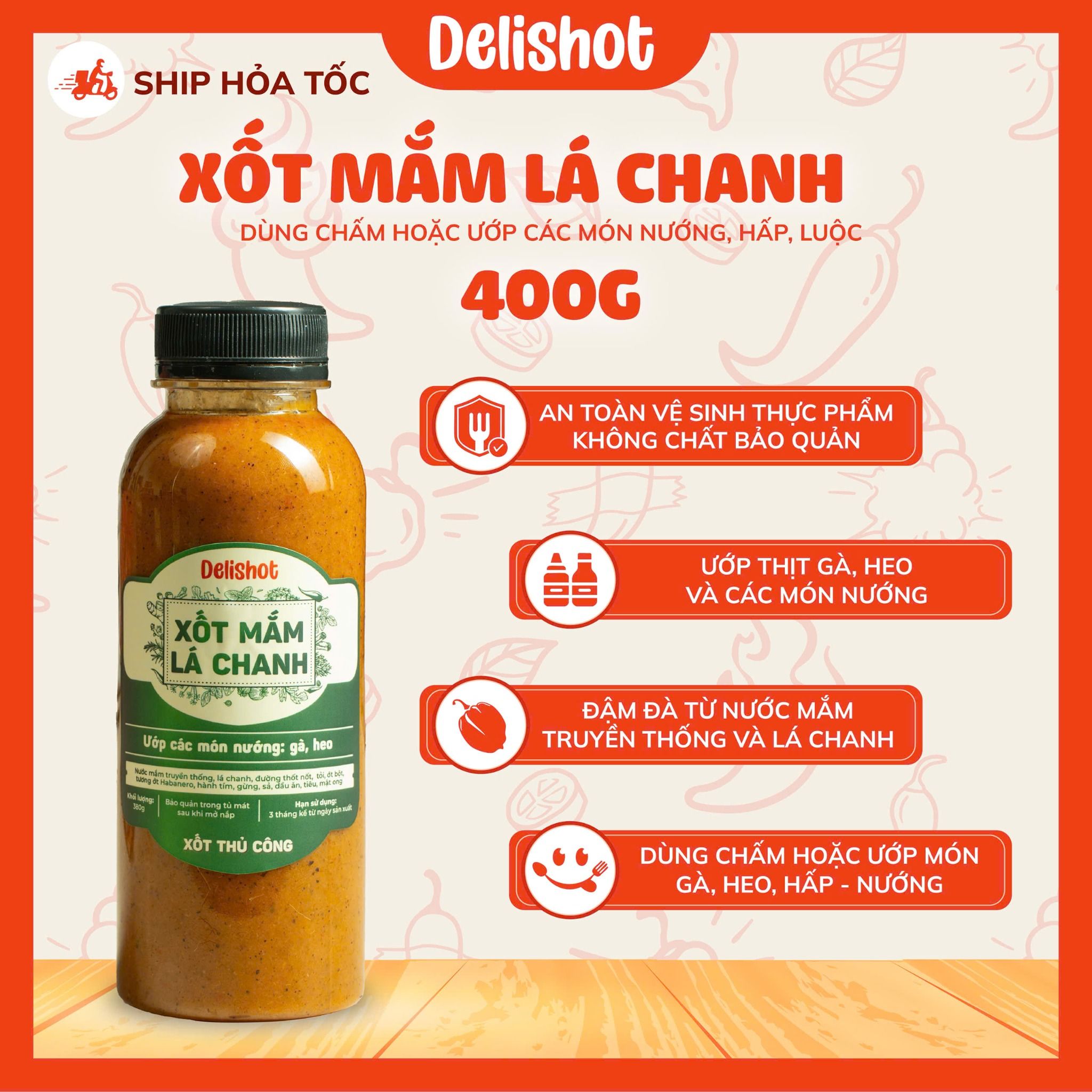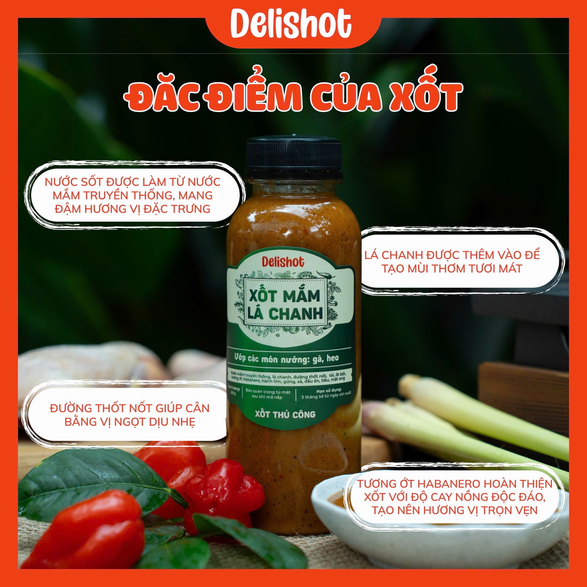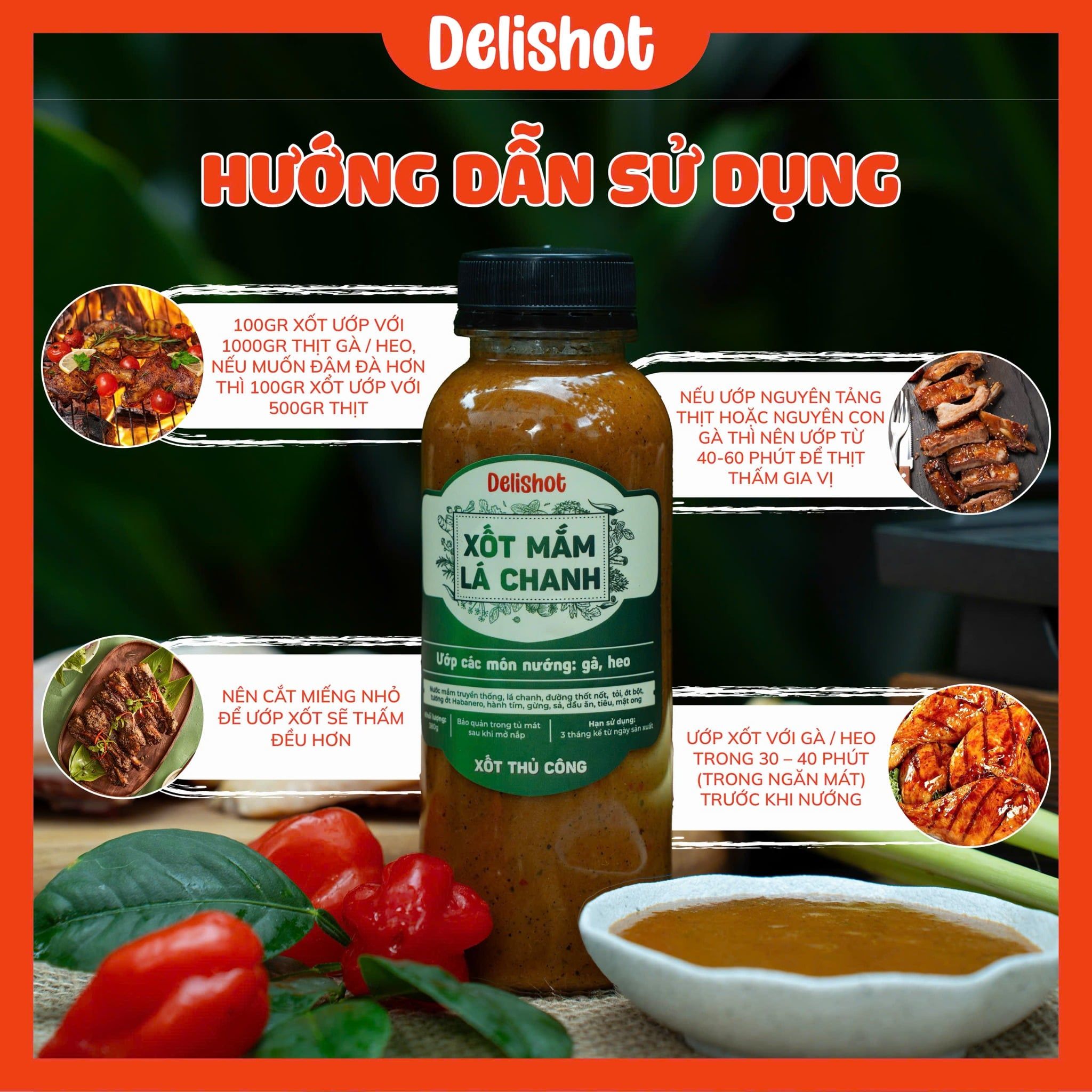 Xốt Mắm Lá Chanh DELISHOT – Ướp & Chấm Gà, Heo, Món Nướng 400g ướp cho 2kg thịt
